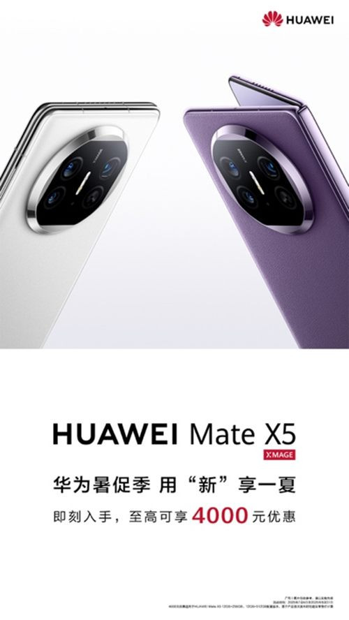 为了让更多消费者体验到华为MateX5的卓越魅力,正值暑期换新季,华为推出了诚意满满的夏日礼遇限时优惠活动,即刻入手,最高可享4000元优惠。