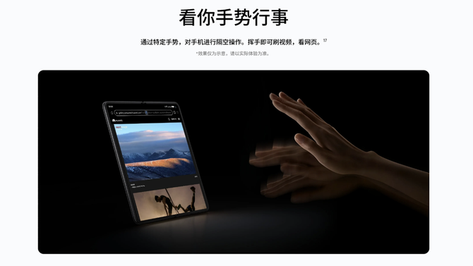 基于鸿蒙操作系统,华为MateX5为用户带来了一系列智慧交互体验与大屏生态系统。支持内外屏隔空手势操作,用户在双手不方便触碰屏幕时,只需通过特定手势,即可实现隔空按压接打电话、隔空截屏、隔空滑动屏幕等操作。